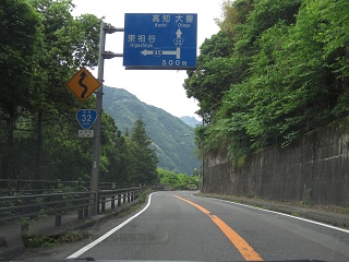道の駅を過ぎ、この標識の先の点滅信号を曲がってください。